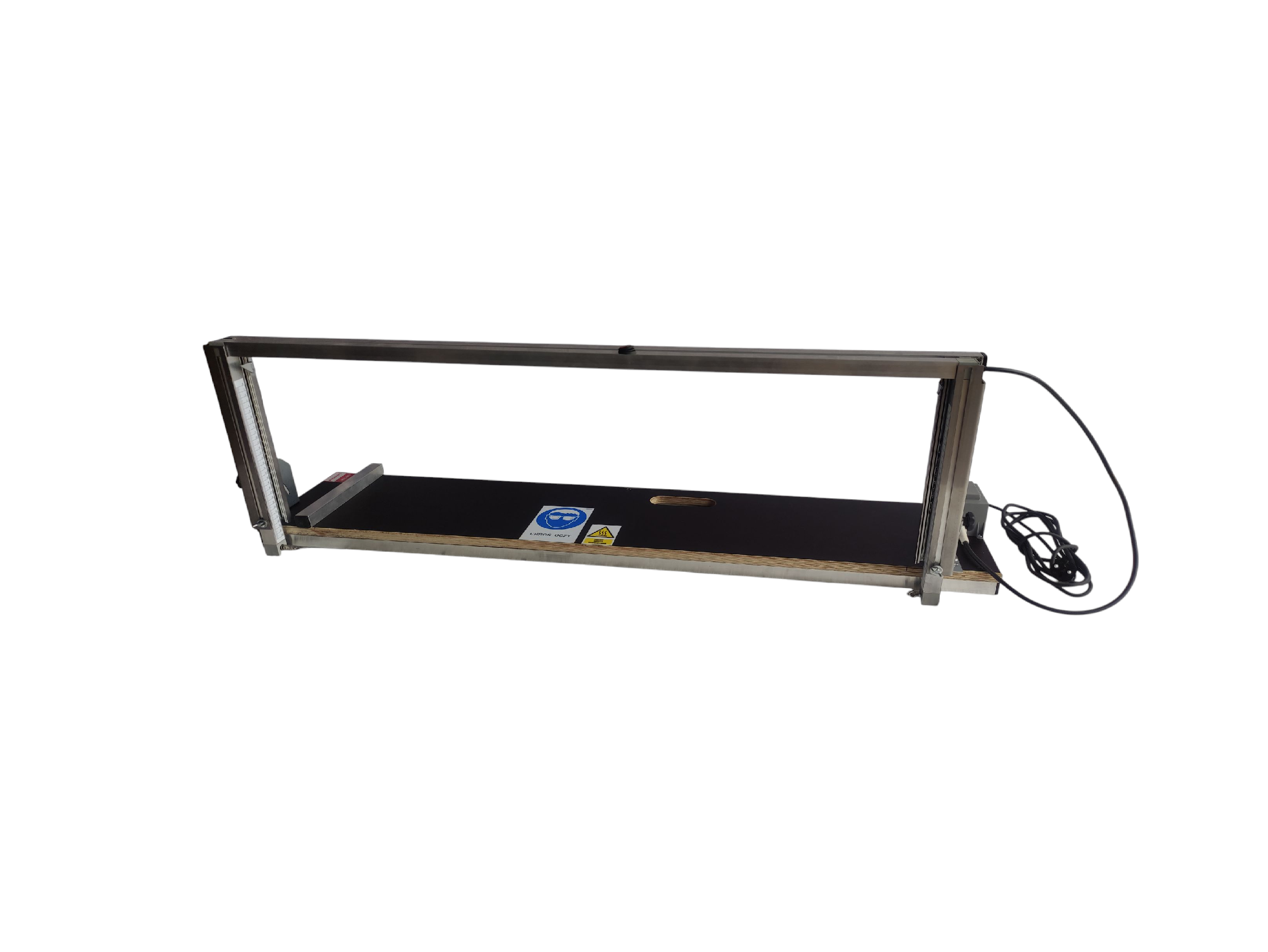 -Mocna, solidna konstrukcja – rama i prowadnice zaprojektowano z trwałych materiałów (stal nierdzewna/aluminium, wysokiej jakości prowadnice, łożyskowania), co zapewnia stabilność, długą żywotność i niezawodność w warunkach budowlanych. Blat wykonany ze sklejki wodoodpornej  wzmacniany od spodu profilami aluminiowymi co dodatkowo usztywnia powierzchnię cięcia – całość konstrukcji odporna na korozję.– aluminiowy przymiar boczny umożliwiający odmierzanie cięcia płyt pod kątem 90°